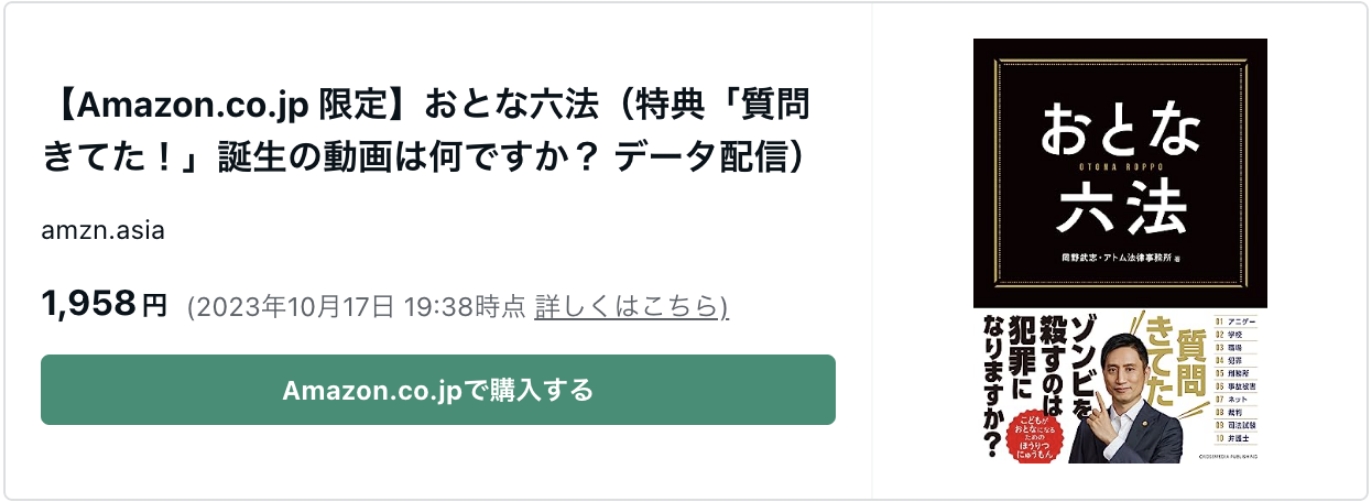 おしい。ただし、ドラ〇もんをパクっていることは明白で、著者が弁護士であることを考えると、リスキーすぎるタイトルです。とはいえ、悪くないタイトルでしたので、半年くらいは寝かせておきました。