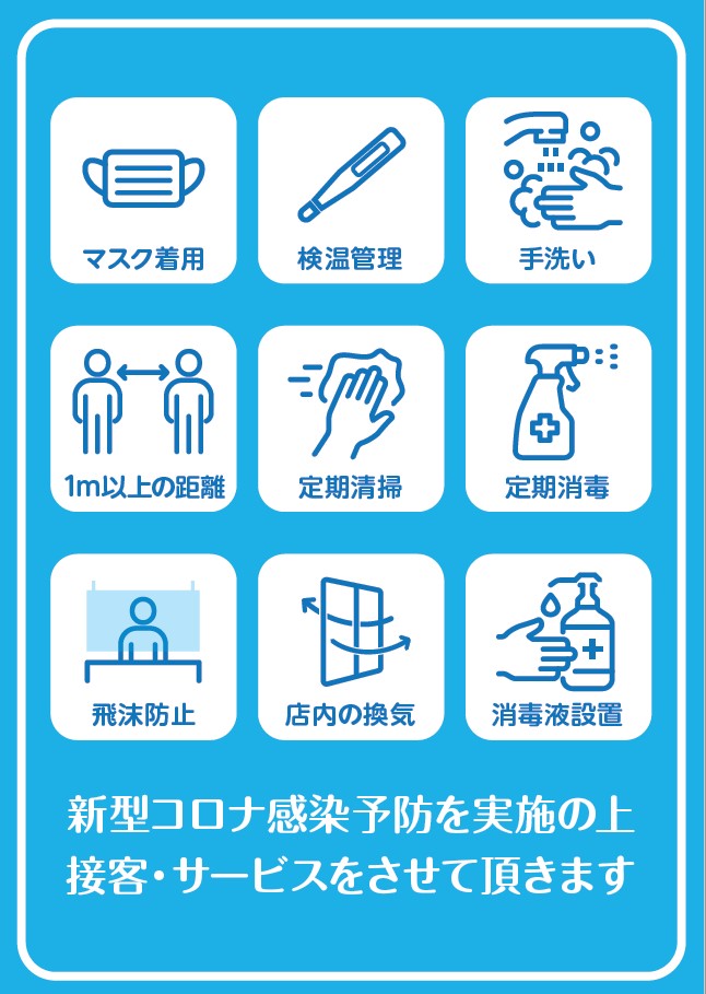 お客様が安心してご利用いただけますよう感染対策を徹底しております。